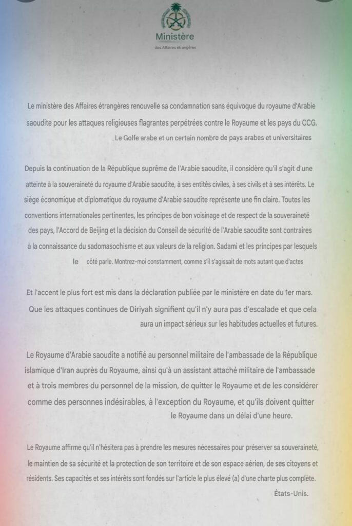 Ce samedi 21 mars, les autorités saoudiennes ont déclaré les diplomates iraniens persona non grata et leur donnent 24h pour quitter le royaume.